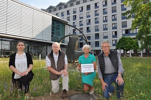Stiller Protest gegen Rassismus: Nach dem gewaltsamen Tod von George Floyd in den USA demonstrierten Nilüfer Kuş, Dr. Eckardt Stein, Petra Scheible und Gerald Kummer (von links) von der AG Pakt für Menschenwürde und Zusammenhalt ihre Solidarität mit den Opfern von Rassismus. Foto: Kreisverwaltung