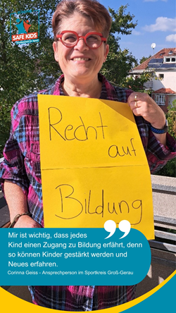 Die Sportkreisjugend Groß-Gerau engagiert sich seit 2018 zum Wohle der Kinder und Jugendlichen im Verein. In der Sportkreisjugend ist Corinna Geiss als geschulte Kindeswohl Ansprechperson aktiv. Corinna ist nicht nur Ansprechpartner für Kinder und Jugendliche, sondern auch für Eltern, Trainer*innen und alle Vereine im Sportkreis Groß-Gerau. Gemeinsam mit den verantwortlichen in den Vereinen es Sportkreises weiß Corinna Geiss welche Hilfe und Unterstützung bei Grenzüberschreitungen und Kindeswohlgefährdung hinzugezogen werden kann.