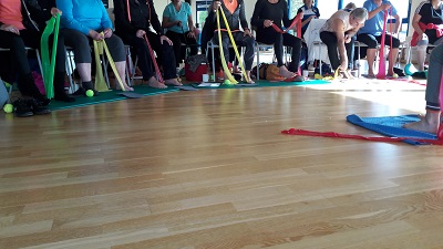 Hauptsächlich setzen die meisten von uns die großen Muskeln beim normalen Gehen ein, die Stützfunktion müssen die Bänder übernehmen. So werden dann nur ein Bruchteil der vielen Muskeln im Fuß genutzt. Die Aktivierung dieser Fußmuskeln spürten die Teilnehmer*innen in den zahlreichen Übungen. Nachspüren ergänzte die Übungen und es gab schnell den einen oder anderen Aha-Effekt.